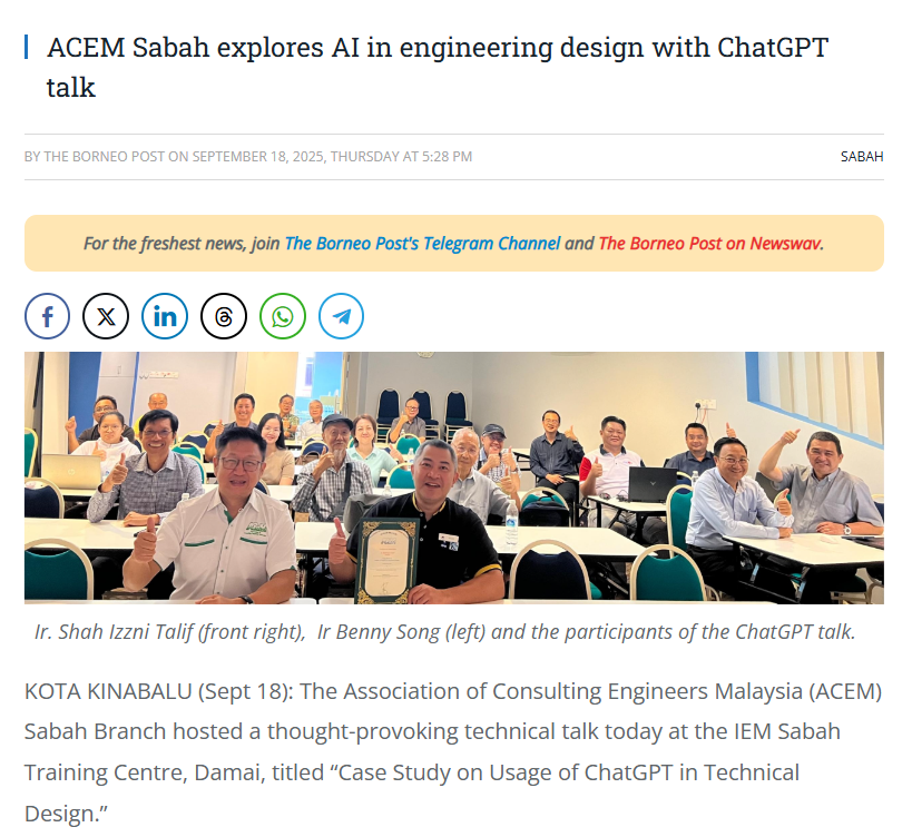 ACEM Sabah Talk on “Usage of ChatGPT in Technical Design”